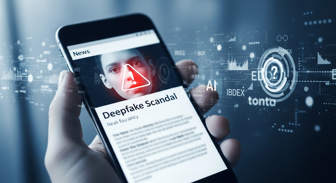 AI 딥페이크 광고와 개인정보 유출 위험 속에서 스마트폰으로 디지털 세상을 탐색하며 자신을 보호하는 사람의 모습. 🚨 2025년, AI 딥페이크 광고와 개인정보 유출의 심각성