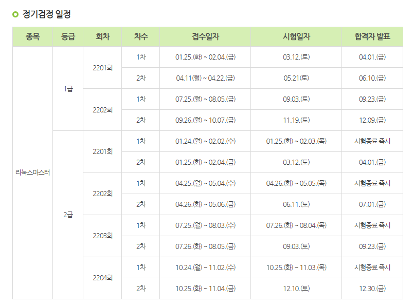 2022년 시험일정