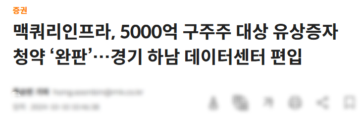 맥쿼리인프라는 최근 5,000억 원 규모의 유상증자를 발표했습니다. 이는 SOC 프로젝트 확대를 위한 자금 조달 목적이지만, 단기적으로는 기존 주주의 지분 가치가 희석될 가능성이 있어 주가에 부담을 주고 있습니다.