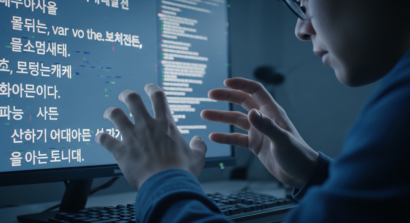 키보드 앞에서 한글 입력 오류로 인해 답답해하는 사람의 모습과 혼란스러운 화면 🔍 한영 전환 먹통, 그 근본 원인을 파헤치다