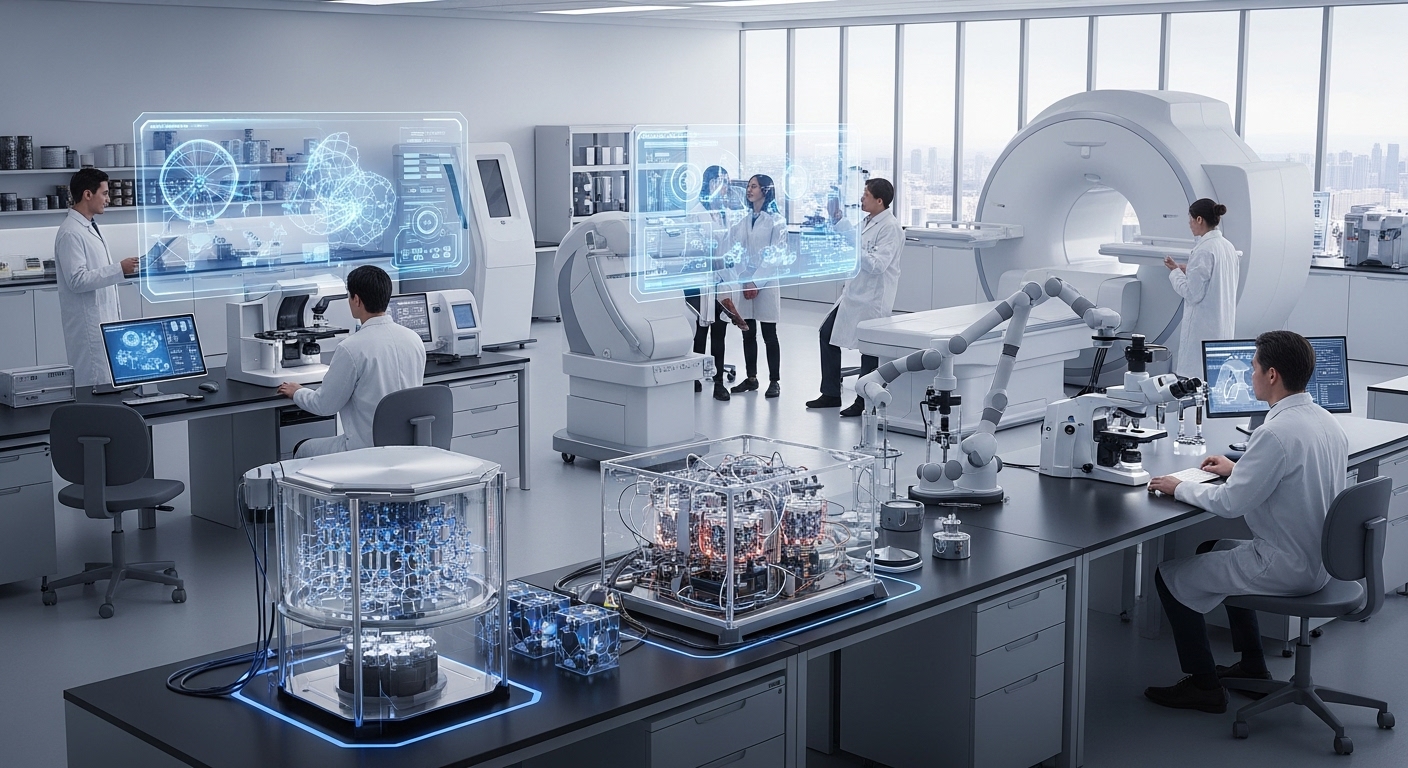 첨단 의료기기 및 양자기술 연구개발을 위한 현대적인 실험실에서 연구원들이 협력하며 혁신적인 기술을 탐구하는 모습 💡 핵심 요약- 응급실 뺑뺑이 방지법: 전용전화 개설 및 정보 공개로 신속한 응급환자 이송 기반 마련 (2026년 5월 시행).