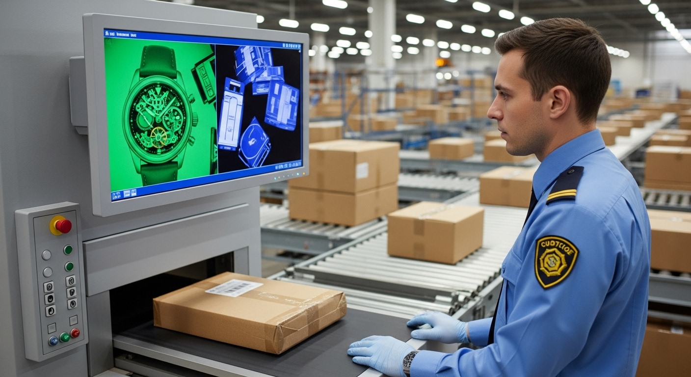 해외직구 불법 물품 단속을 위해 X-RAY 검사를 진행 중인 세관원 ⚠️ 주의: 해외직구 짝퉁 제품의 위험성