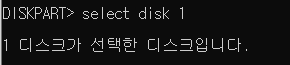 - 삭제하고자 하는 디스크에 해당하는 "select disk [포맷하려는 디스크 번호]" 명령어를 입력